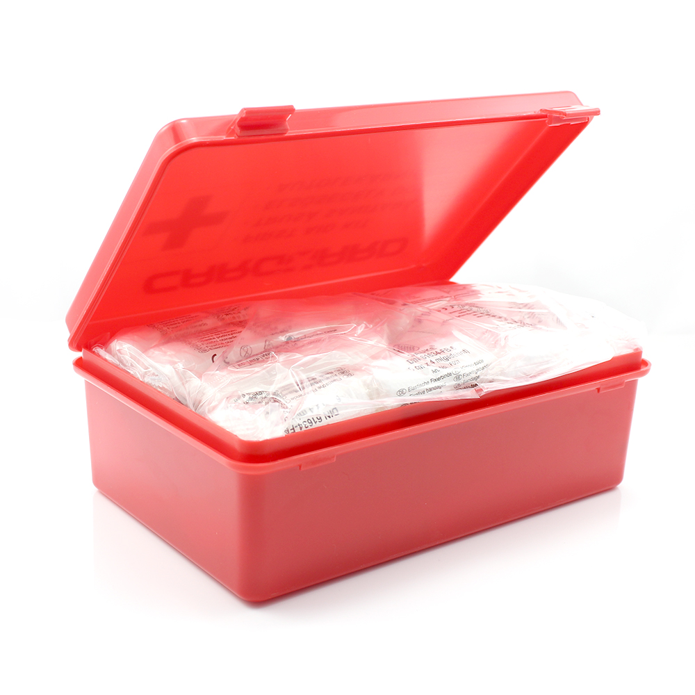 KRESZ által előírt „B” elsősegély doboz. Személygépkocsihoz, oldalkocsis motorkerékpárhoz, tehergépkocsihoz, mezőgazdasági vontatókhoz és lassú járművekhez.