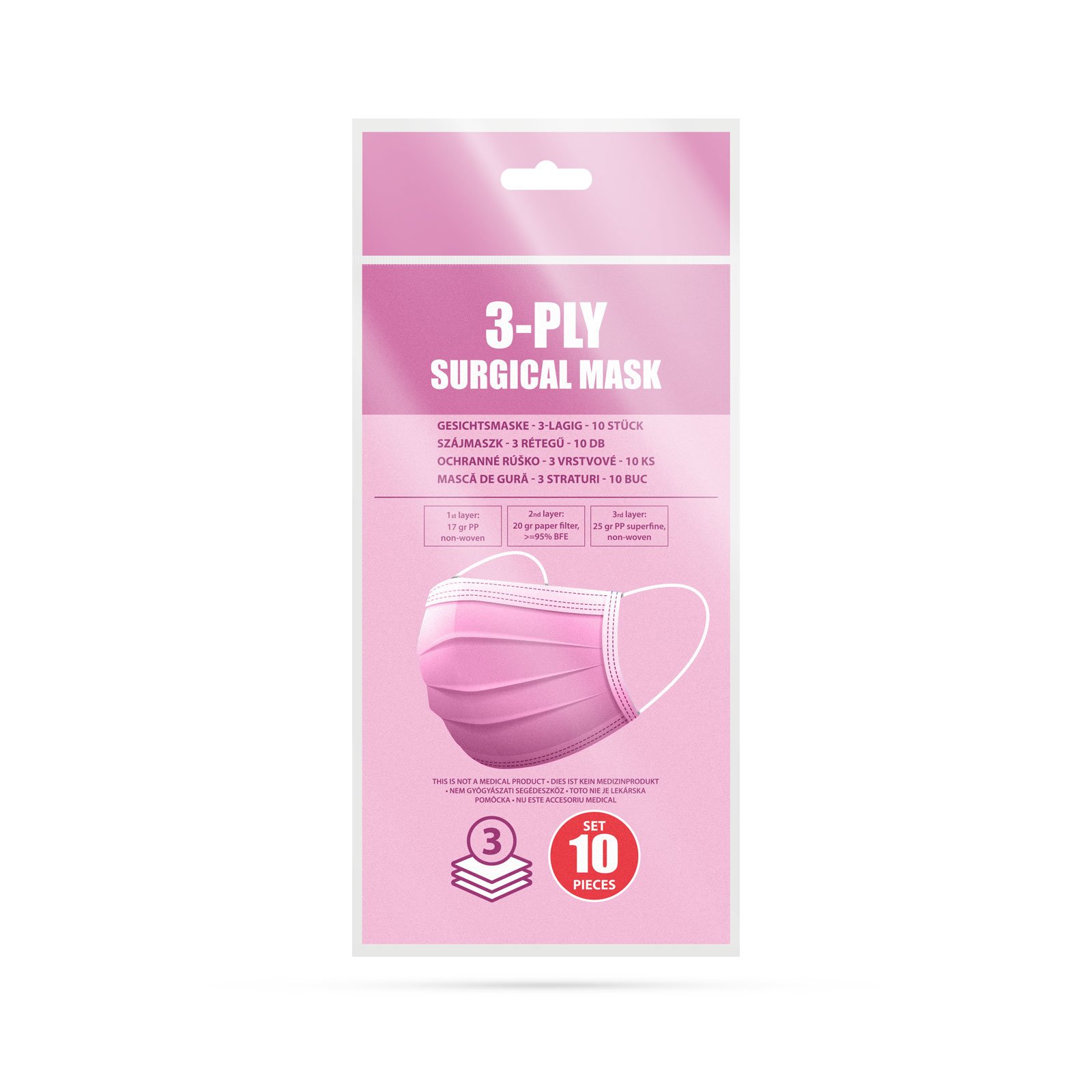 Szájmaszk - 3 rétegű rózsaszín 10 db/csomag